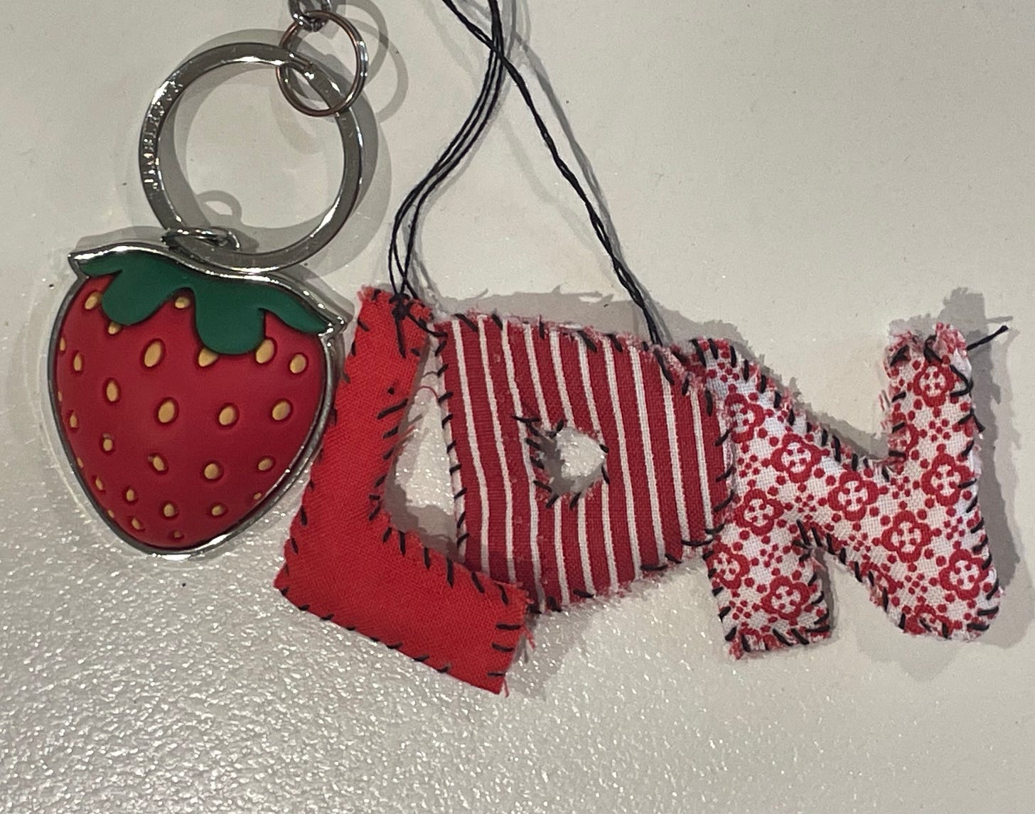 Cut your letters or cherries or whatever other shapes you’re spotting on the runway or on bag charm ShopMy pages. Proceed to hand-sew shut, using other scraps to fill inside your creation, et voila: you’ve got bespoke fabric charms!