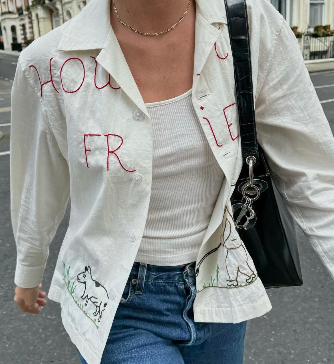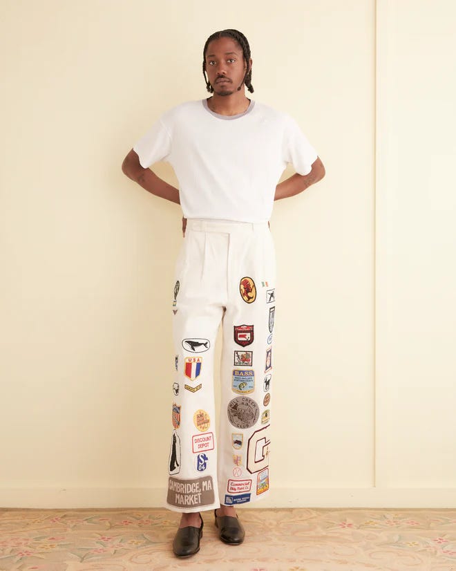 Whether you have holes in your denim or not, the new frontier of personalization is the perfect platform for spinning old scraps into custom details on your clothing (or just as likely these days, your canvas tote). You can lean old-school with some elbow patches, or you can experiment with a mixed media version of your clothing that speaks Bode’s signature language. Layer embroidery, or trucker patches, or paint over/under your fabric patches. It’s fun to have fun, no?!